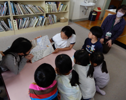今日は雨のため、そうじをしない1年生の半分に読み聞かせをしてくれていたのです。すっきりしない天気でしたが、とても爽やかな時間が流れてほっこりしました。