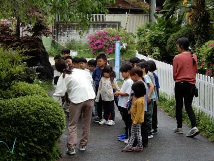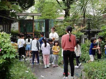 学校内の様々なものを目にしたり、様々な人と関わったりしています。学校探検をしながら興味・関心を広げていました。