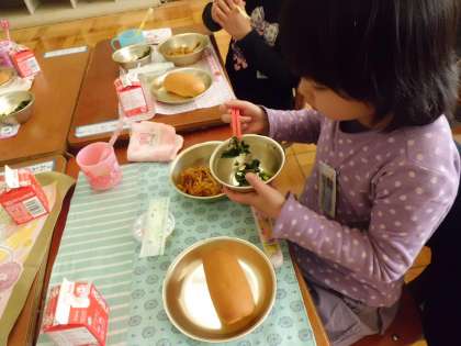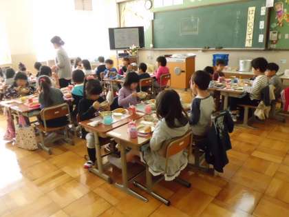 子どもたちにとって初めての給食は,とてもおいしく,楽しい時間となりました。