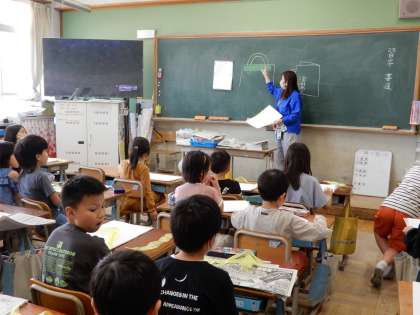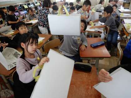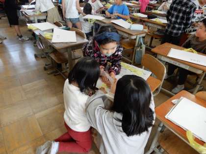 書写の作品袋を作っています。少し難しいとかと感じた作業でしたが、すんなりできるところに成長を感じました。