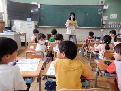 安全ノートのイラストをみながら正しい登下校について意見を出し合っていました。