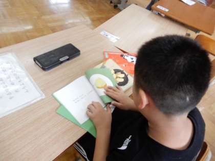 読書を進めている子や担任の先生とプリントの確認をしている子がいます。