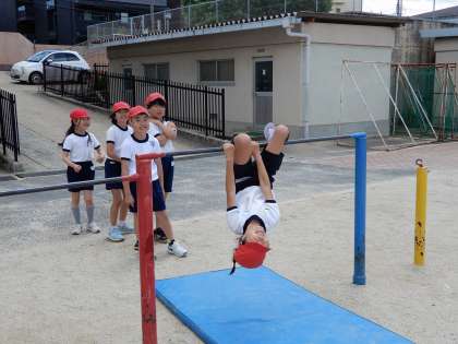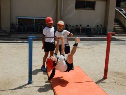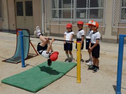 順番を守り安全を確認しながら鉄棒遊びをしていました。