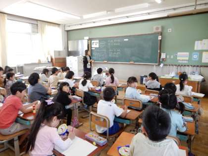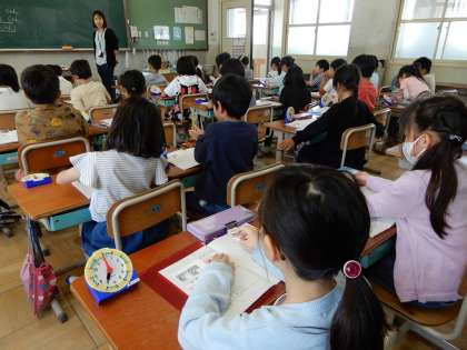 午前が12時間、午後が12時間あることが分かり、1日は24時間あることを学んでいます。