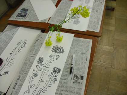 先週の水曜日に図工で菜の花の下書きをしました。子どもたちは菜の花の特徴を思い思いに描いていました。今週は色を塗る予定です。