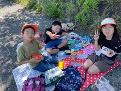その後は、鴨川でお弁当タイムです。持ってきたお弁当を友だちと一緒に食べました。