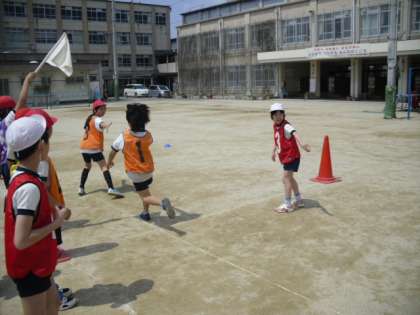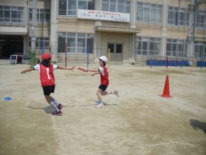 4年生の体育は、リレーでダッシュ!
