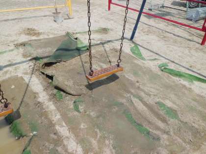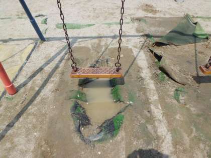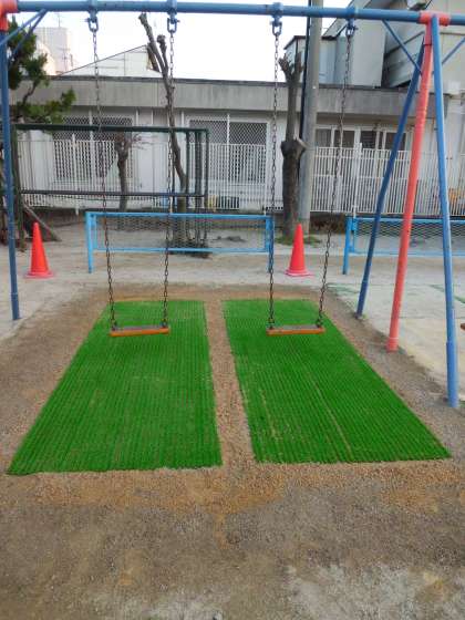 子どもたちに人気のあるブランコ。足元がけずられ悲惨な状況でした。安全に乗れるよう改修しました。