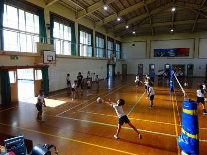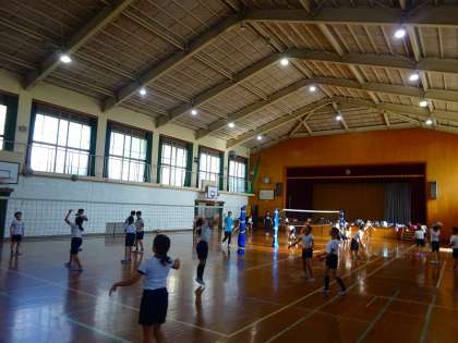 体育館では、バレーボール部が活動をしています。
