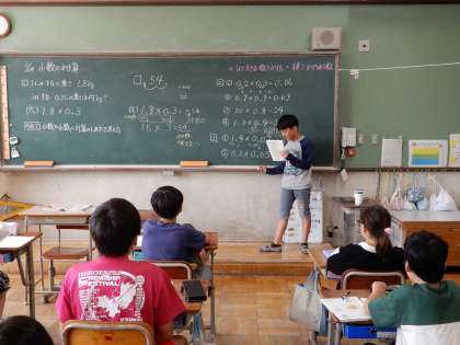 黒板の前に出てきて計算の考え方を説明していました。