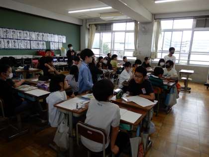 文字を使った式から、三角形の面積をどのように考えて求めたか説明していました。