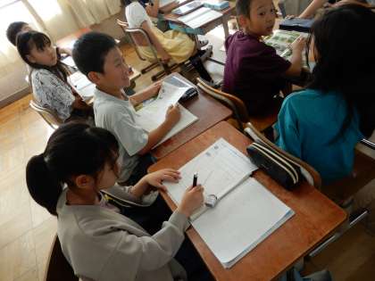 蝶のさなぎを観察したり、ホウセンカを見に行ったりして気づいたことをまとめていました。