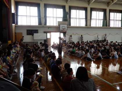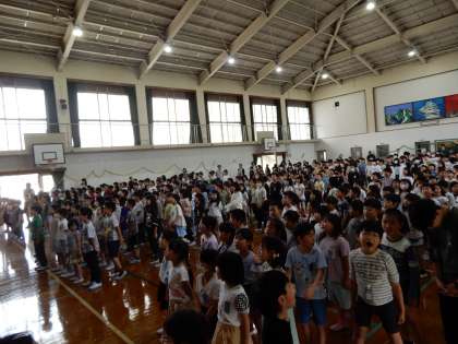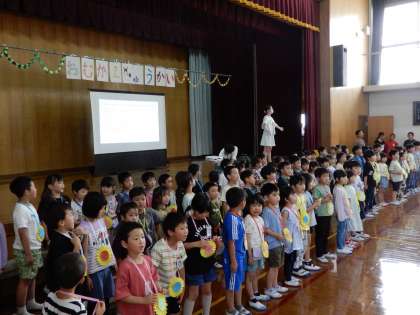 音楽委員の子たちが全校で「手のひらを太陽に」を合唱してくれました。