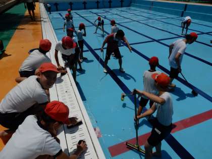来週から始まる水泳学習に向けて6年生がプールをきれいに清掃してくれました。