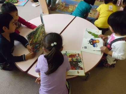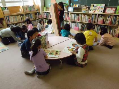 おうちの人と一緒に帰る児童は図書室で本読みをして待っています。