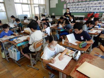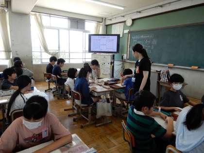 (分数)×(分数)の計算の仕方を考え、説明しています。