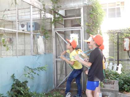 学校にある井戸や池、鳥小屋等から、その様子を観察しメモをとっています。