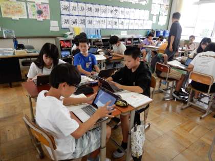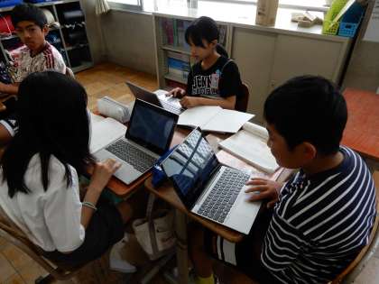 情報と情報をどう関係づけて伝えるかグループごとに提案書を作成しています。