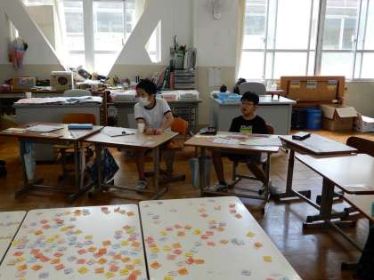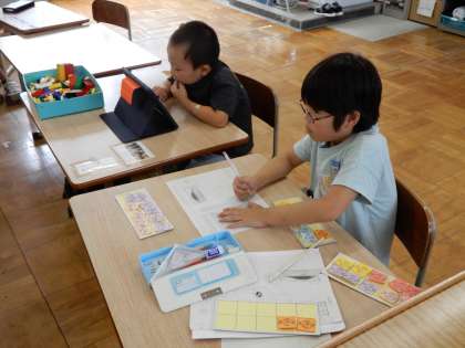 友だちのポイントとを自分のポイントを比較したり、どちらがどれだけ多いか計算したりしながら楽しんでいました。
