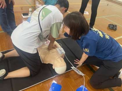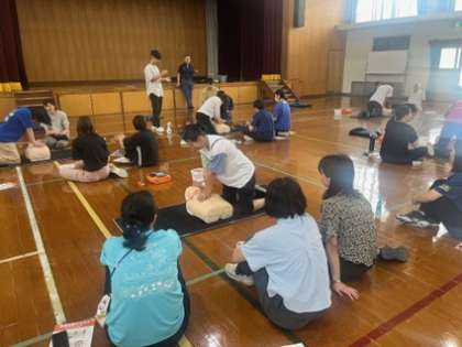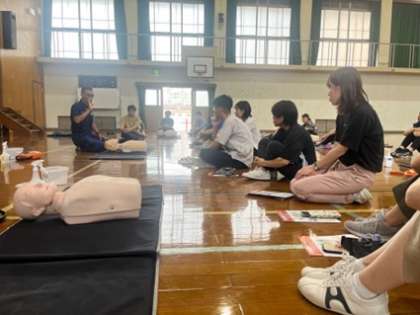 伏見消防署の方に来ていただき、心臓マッサージの仕方やAEDの使い方などを教えていただきました。