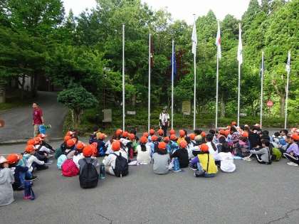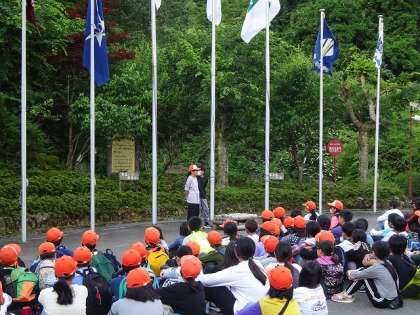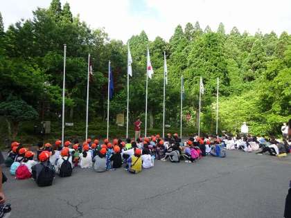 二日目の朝は、春日野小学校と合同で朝の集いを行いました。