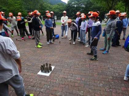 倒れたスキットルという木の棒の本数などによって得点を加算しながら競うものです。