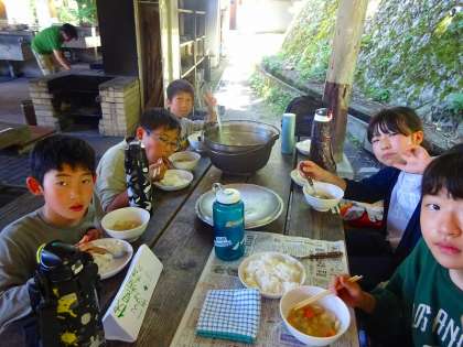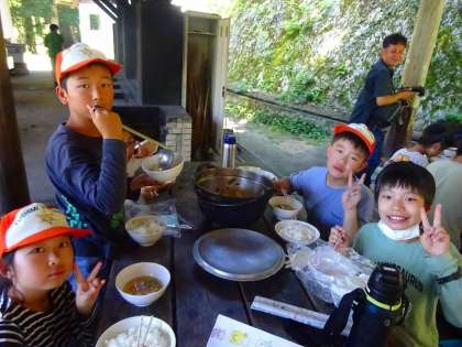 グループでおいしく豚汁を食べました。
