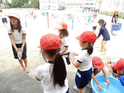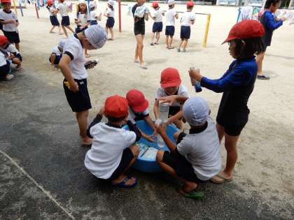 水を使ってどんな遊びができるか考えています。