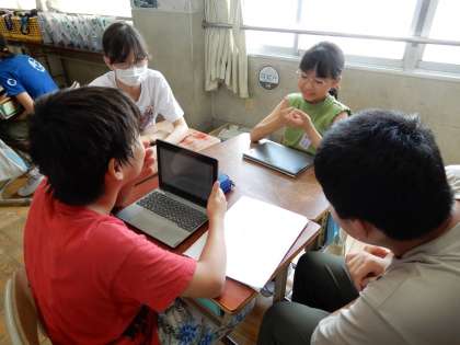 ブックトークをしていました。おすすめの本を友だちに紹介しています。