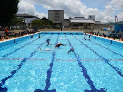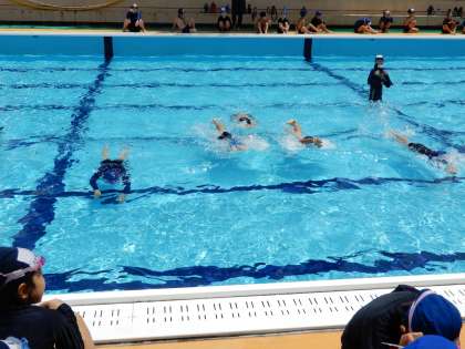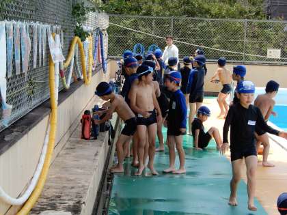 2年生の割当のときは雨が多かったのですが、今日はいい天気の中、水泳学習ができています。