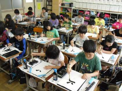 2組は習字でした。すごく真剣なまなざしで、一画一画ていねいに書けていました。