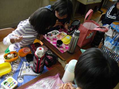 遠足は残念でしたが,今日はお家の人の作って下さったお弁当に子どもたちは大喜び。