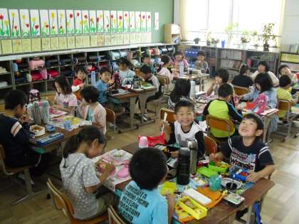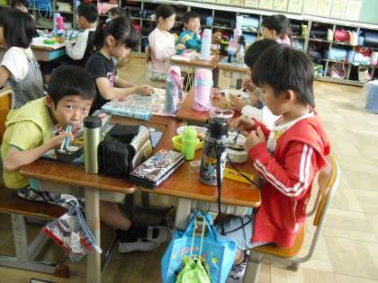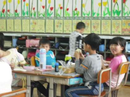 今日は,遠足が雨で延期になったので,作っていただいたお弁当を食べました。グループでおいしくいただきました。
