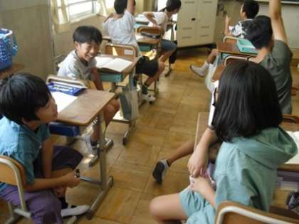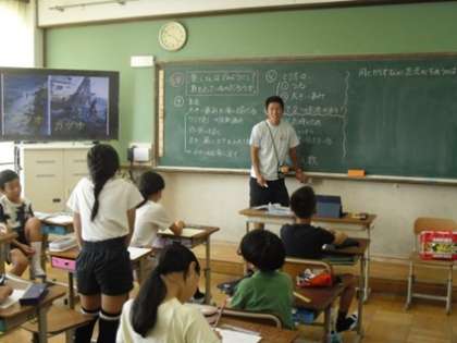写真をみながら漁師さんたちがどのような方法で漁をしているのか話し合いながら考えています。
