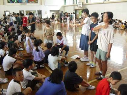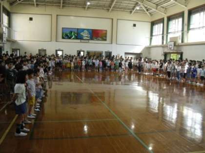 運動委員会や音楽委員会から連絡があり、全校合唱もしました。