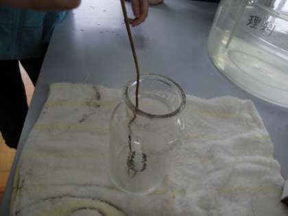 酸素,二酸化炭素,窒素それぞれの中での燃え方を調べました。