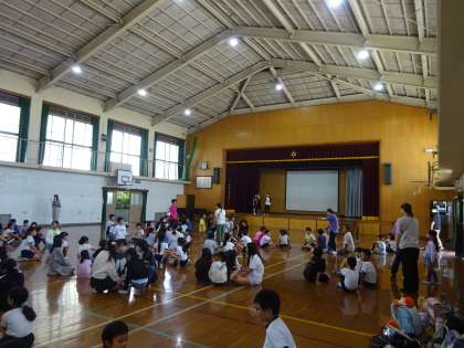 今日は、昼休みからのびのびタイムの時間を使って、たてわりグループでなかよしタイムを行いました。6年生の子どもたちが、リーダーとなり、全学年のみんなが楽しめる遊びを企画しています。