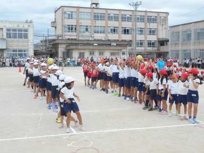 練習では,並ぶ順番はどうしようか。どうしてボールを渡すととりやすいかなと6年生がリーダーとなって話し合っていました。
