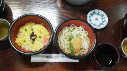 二日目,昼食には讃岐うどんと,ちらし寿司をいただきました。