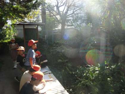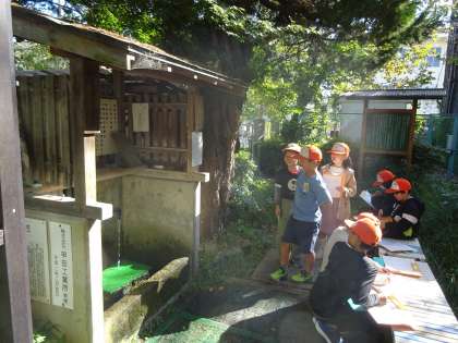 数名の子どもたちが、本校の白菊の井戸について調べていました。