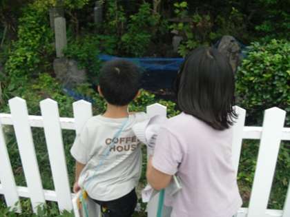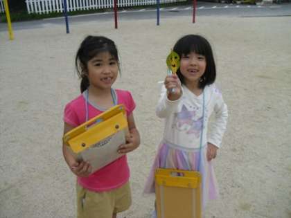 校内で顔に見える形を探しました。友だちと一緒に形を見つける活動を楽しみながら、見つけた形を絵にスケッチしたり文に書いたりしていました。