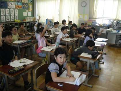 秋の楽しみをテーマにした俳句作りに取り組んでいます。教室では、秋からイメージできる行事や風景について意見を出し合いながら、各自の感性を活かした俳句を作成しています。