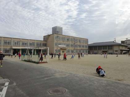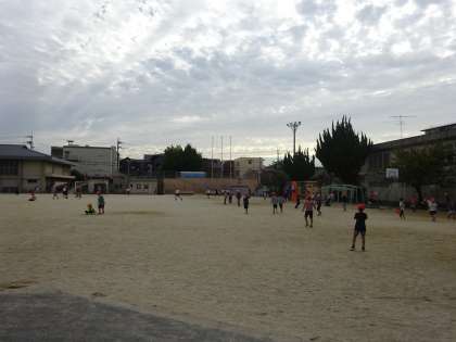 朝休み、グラウンドでは、子どもたちは元気に遊んでいます。