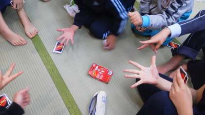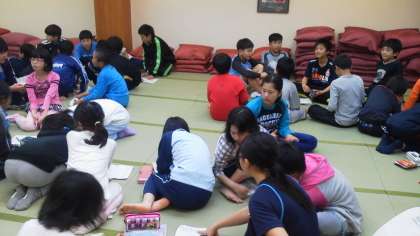 夕食を済ませ,大広間で1日のふり返りをしました。