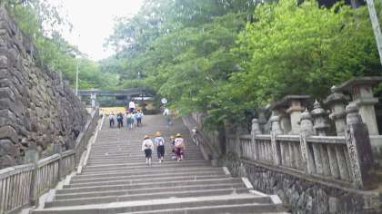 金比羅宮参道を登ります。785段の階段を上りきり,下りで最後のショッピングを楽しみました。