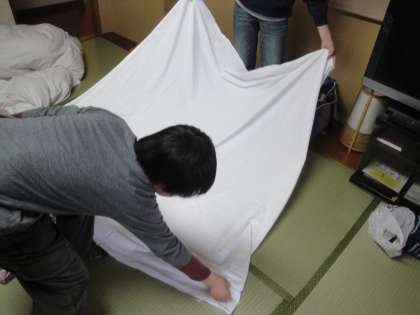 グループで協力して,布団を上げたり,部屋の整理をしました。