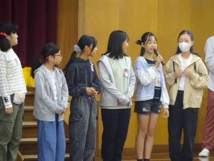 前期の代表委員に続いて、後期の子どもたちも、全校児童の前で堂々とした態度でした。