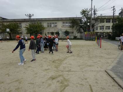 今日は、新しいなかよし遊びを提案するために、実際に遊びを行い、課題があるかを考えています。