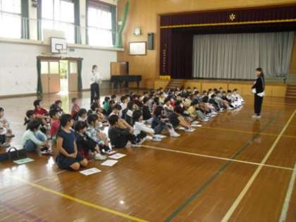 今日から、学年全体が体育館に集まり、発表会に向けての練習が始まりました。