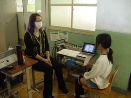 ALTとのパフォーマンスチャレンジを通じて、調べたことや学んだことを1対1で話す学習を行っていました。